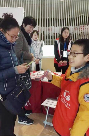 小传播官在邀请路人扫码关注加油一起成长 3号上午11点,中国扶贫基金会的小小公益传播官们也身着工作服来到了活动现场,主动担任起了向公众介绍加油一起成长公益项目的重任。小小传播官阳阳看到一个抱着小孩的阿姨在看心愿树时,主动走上前介绍到:阿姨,您好,我是中国扶贫基金会加油一起成长项目的小小传播官,我们今天在这里做公益活动,您可以扫描一下我的这个二维码,关注这个公众号,了解山区孩子们的生活学习情况,您还可以以每个月捐款100元的形式长期持续帮助他们,他们的生活条件很差,每天要走好几个小时去上学,平时都只有土豆吃。我特别希望用自己的力量帮助他们。