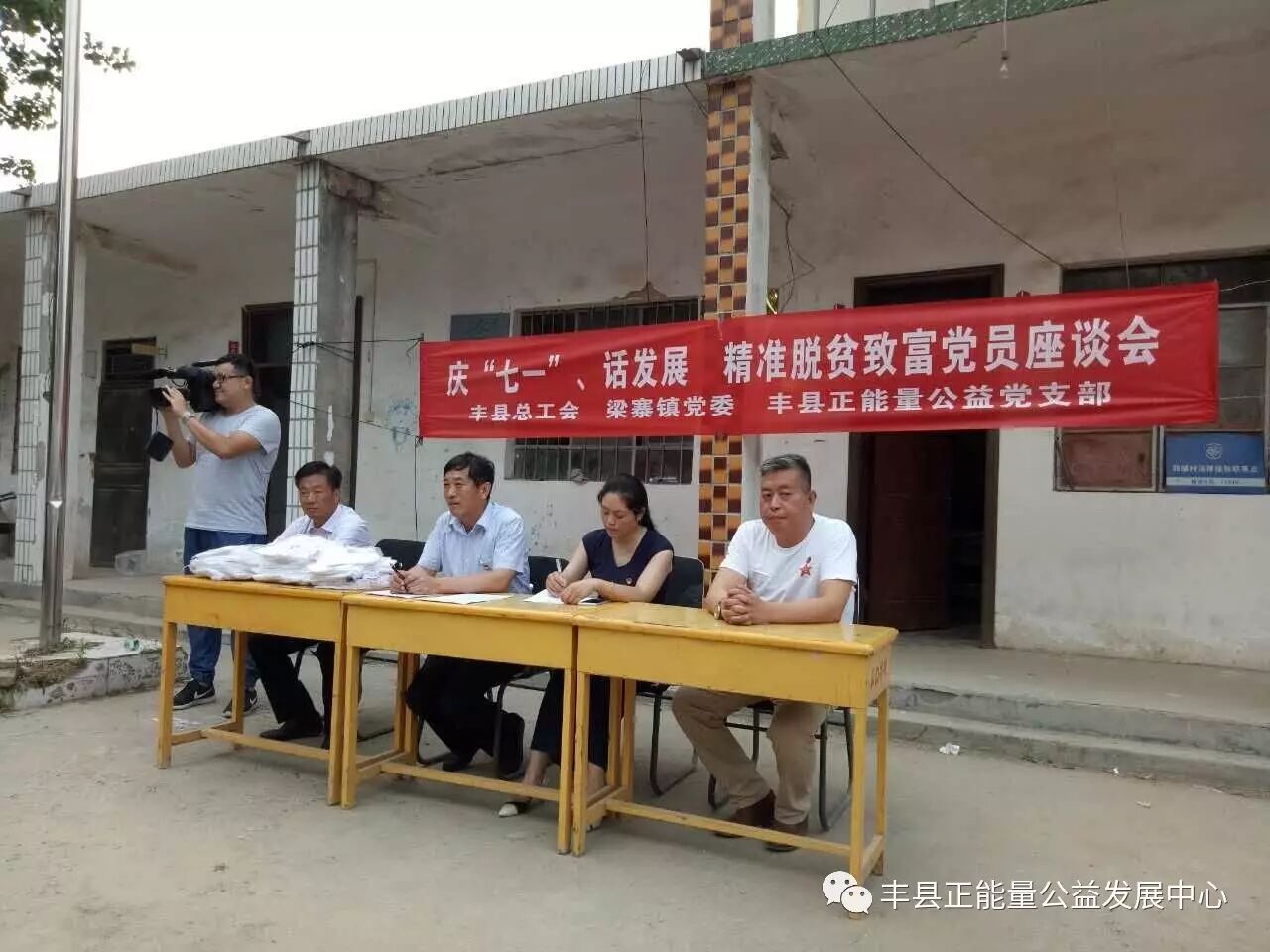 29日下午,在“七一”建党节即将到来之际,江苏省丰县总工会,梁寨镇党委,华山镇丰县正能量公益党支部在四楼村展开庆“七一”、话发展,喜迎党的“十九大”,精准脱贫致富党员座谈会。县总工会,梁寨镇相关党员干部及部分村干部、党员代表,丰县正能量公益党支部全体党员志愿者70多人参加了座谈。