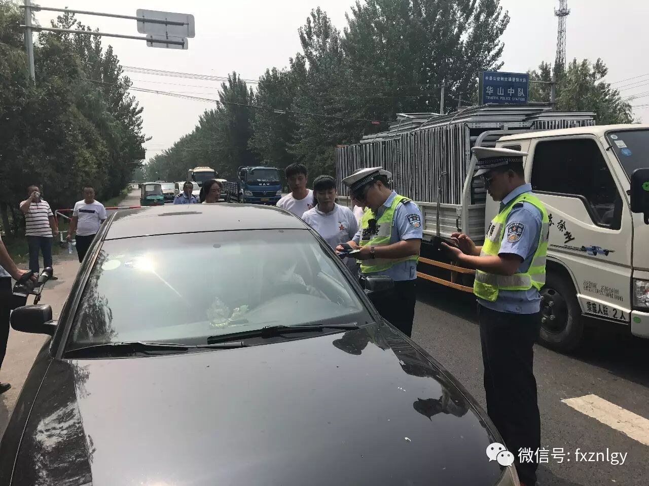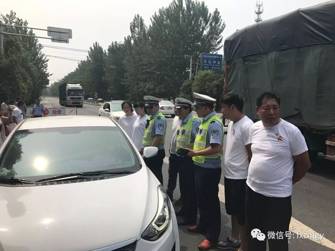 华山中队负责的是丰县东大门322省道(徐丰公路)丰县境内最东端到县城外的全长近10公路的路面执勤任务,车流人流都非常频繁,高峰期1分钟内通过车辆多达300辆,全路经过丰县大镇华山镇和著名的大沙河大桥及大小20多个村庄,交通状况异常繁杂。华山中队现有5名交警和6名辅警,执勤任务非常繁重。中队长田素兵说,连续的高温让大家都快支持不住,几个同志都出现中暑的情况。执勤民警不仅要在岗点执勤,还要巡护大家的出行安全,更要查处各类交通违法行为。但是如果我们图凉爽,不执勤巡逻,那么我们管理的交通秩序就乱了,我们宁可多付出点,也要保障我们每位交通参与者出行平安。今天丰县正能量公益党员志愿者来慰问我们中队,让我们在最热的时候感受到了丝丝清凉,有这些爱心人士和广大群众的关心,有大队为我们时刻着想,我们再大的付出都是值得的。