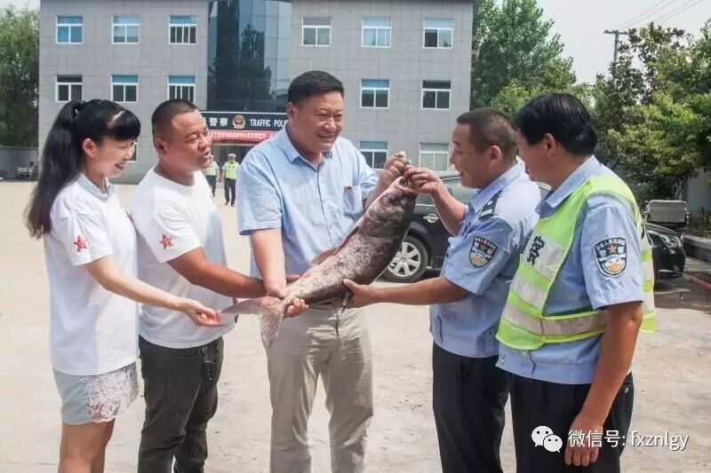 慰问品中一条刚刚打捞上来的重达8公斤的活蹦乱跳的花鲢格外引人注意,这是正能量公益党支部副书记、工会主席李建国带来的,为了给辛苦的民警改善一下伙食。这让大家想起上个世纪物质贫乏,地方到部队、警营慰问都是带着鸡鱼肉蛋等食品,现在慰问带着活鱼的情形并不多见了。
