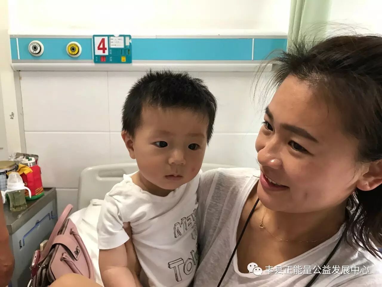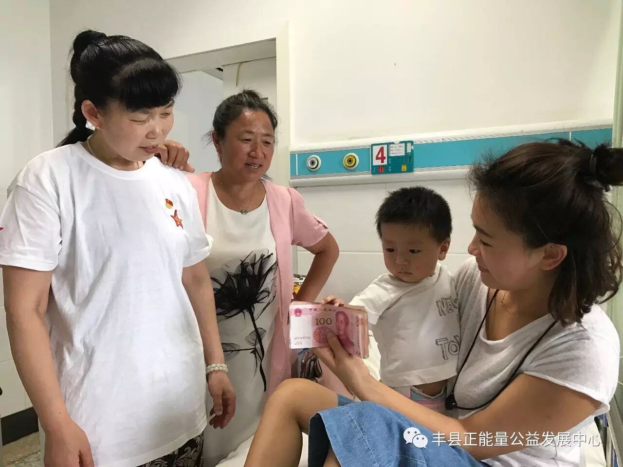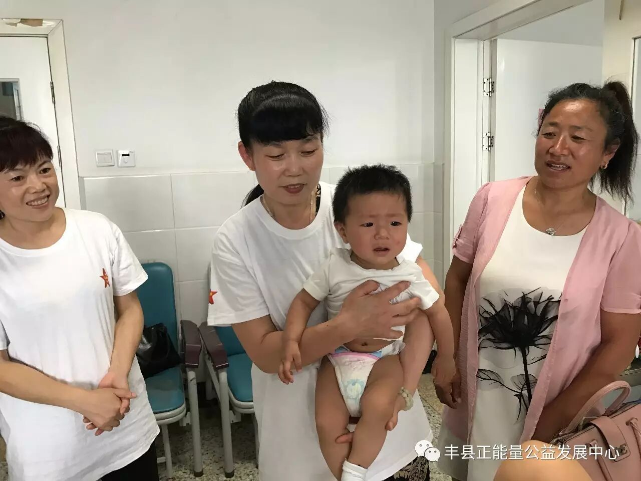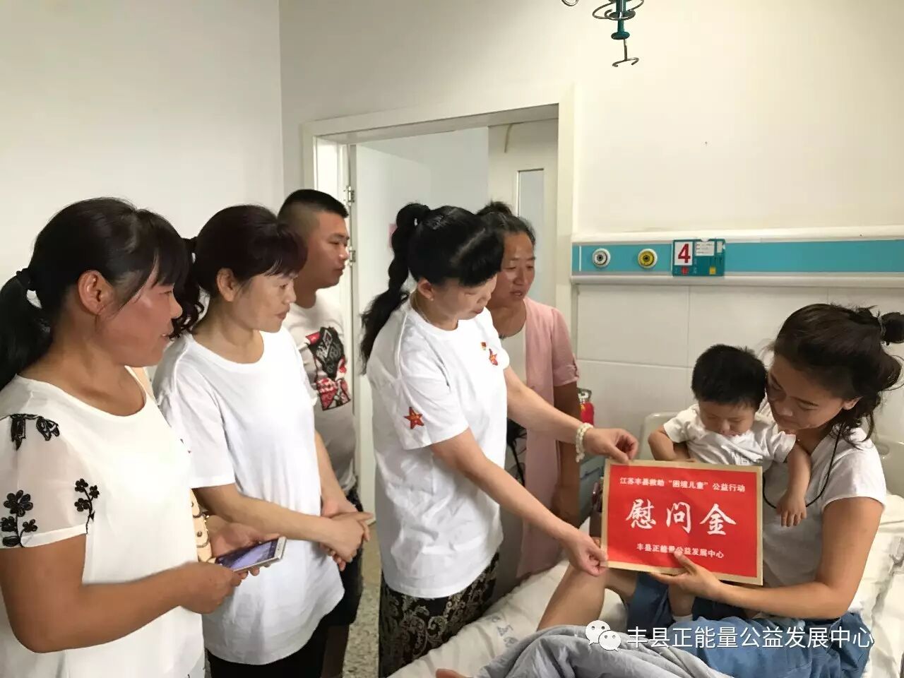 “七一前夕”,2017年6月30日上午丰县正能量公益党员志愿者再次来到丰县开发区医院,看望在丰县“6.15”爆炸案中最小的受伤者——4个多月大的袁英乔(乔乔),并为其第二次送上3600元的慰问金,10天前看望这个孩子时已经为其送上1000元慰问金。