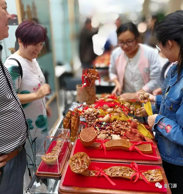 展览现场吸引了大量群众前来参观,侯氏脸谱、桃木雕刻、青岛剪影等展位前围满了前来参观的群众,被山东省的传统文化深深吸引。