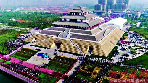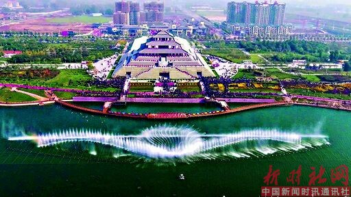 开幕式现场的43面旗帜,分别代表了参加展会的全省18个省辖市、10个省直管县和外省的6个地市。开幕式的编排非常有创意,把中原文化元素和鹤壁文化元素都融入其中,同时借用淇河美景打造了一场水秀。