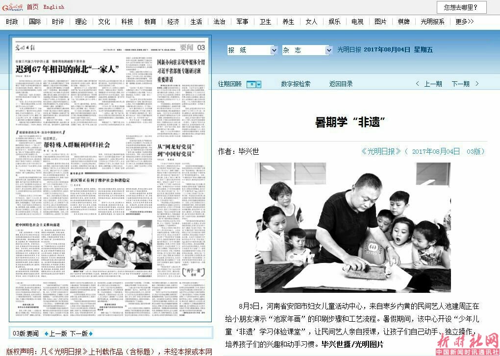 中国共产党新闻网、人民网、光明日报、中国文化报、新华网、中国青年网、中国青年报、中国教育报、中国日报、中国新闻出版报、中国文明网、河南日报、河南文化网、河南工人日报、青年导报、一线杂志、安阳日报等中外新闻媒体多次对池家®年画和池建周进行报道。
