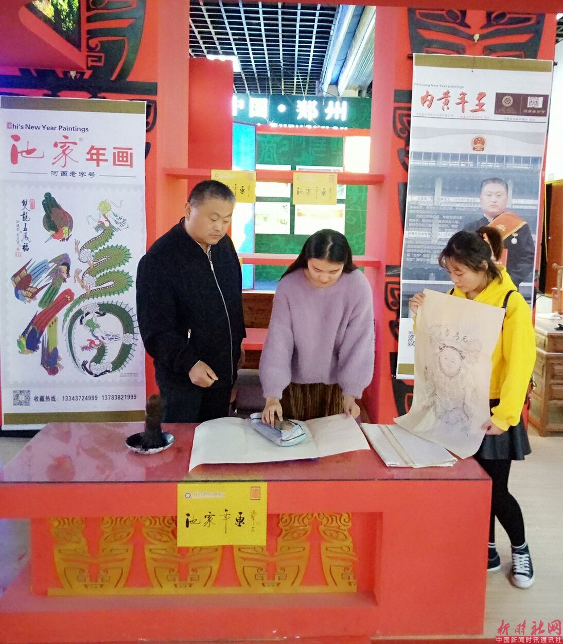 池建周在现场展示池家年画的传统制作技巧,与观众交流互动。来自鹤壁市的王子月等市民尝试用中国传统木版年画制作技艺完成了一幅幅年画的线稿印刷,不仅与传承人切磋了技艺,还体会到中国传统文化的独特魅力。