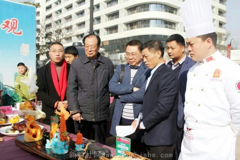 致辞流程结束后,与会嘉宾、领导来到菜品展示区,各位大师分别在自己菜品前等候,嘉宾、领导一个接一个的查看了市内大师、名师精美绝伦的作品,仔细听各位大师对于自己菜品的讲解,分别从菜品的来源、菜品制作用料、烹饪方法、药效功用等方面作了介绍,听了各位大师的讲解,与会嘉宾和领导不时交口称赞,不时点头致意,本次菜品展示突破了以往求量不求质的弊端,这次参展菜品无论从造型、颜色、种类、用料、烹饪难度都有很大提升,既有来自如意酒家的“春景怡人”,似小桥流水人家般宁静;也有曾经服务过国家领导人的“十矿胡辣汤”、“牛皮大包子”;金灿灿的祝府菜馆烤花卷闪耀夺目;蝉噪林逾静,鸟鸣山更幽,来自平顶山市马记大酒店的李兴旺的“藤椒金盏牛仔粒”好似在阳光下惬意小憩;交通大厦杨需春的“阿春扣肉”丰润饱满,香气四溢。郭西伟的“脆皮羊肉”集草原之精华,养天地之美味;活动东道主鹰皇西餐厅5道西餐,八珍玉食,垂涎三尺。