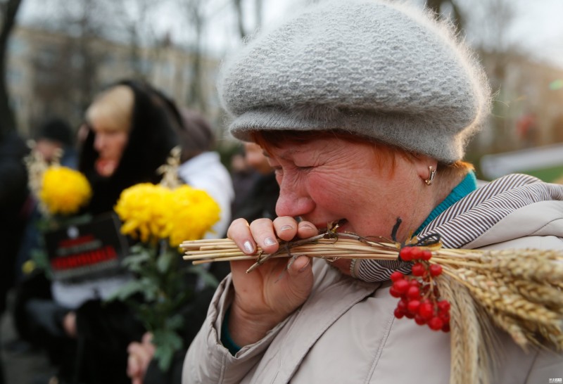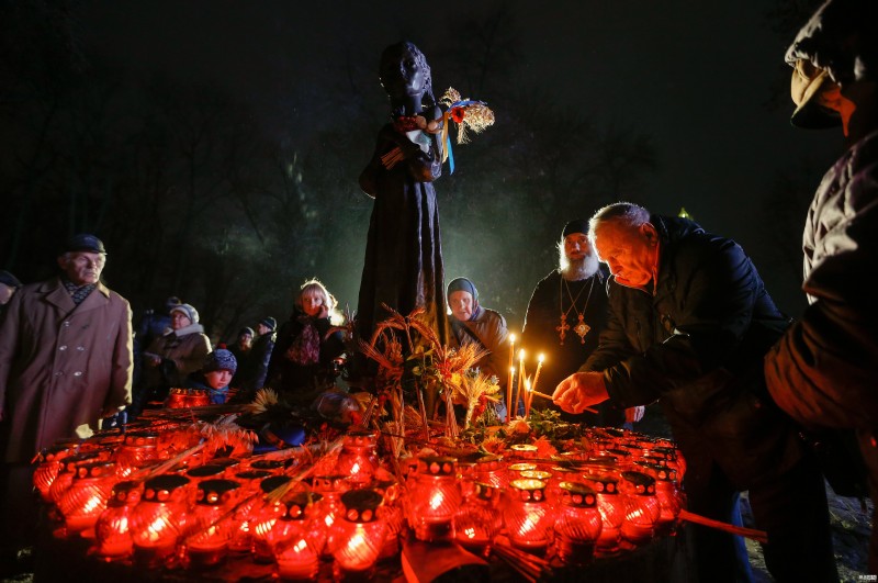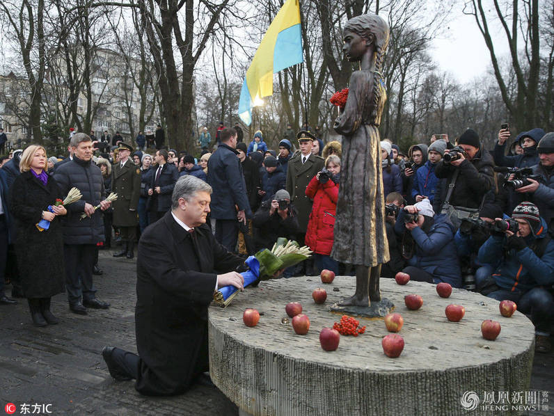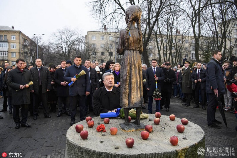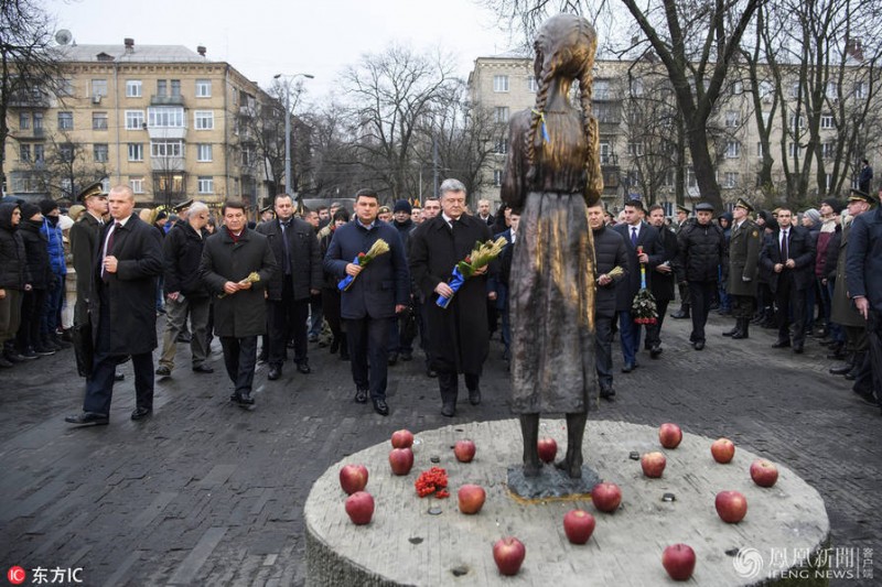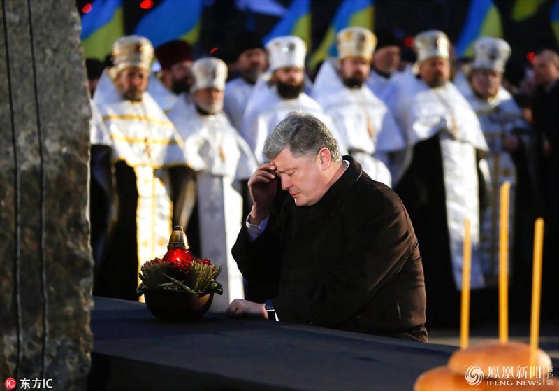 当地时间2017年11月25日,乌克兰基辅,民众举行活动,纪念1932-1933大饥荒84周年,追悼超过5百万的遇难同胞,总统波罗申科出席纪念仪式。