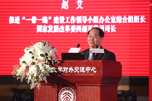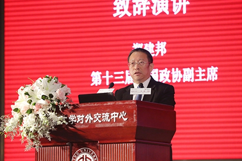 全国政协副主席郑建邦,北京大学光华管理学院名誉院长厉以宁,推进一带一路建设工作领导小组办公室综合组组长、国家发展改革委西部开发司司长赵艾,教育部教师工作司司长王定华出席并致辞。北京大学党委书记郝平到会祝贺,区域与国别研究院院长钱乘旦,以及学校相关职能部门领导出席了本次大会。北京大学副校长王博代表学校致欢迎辞。